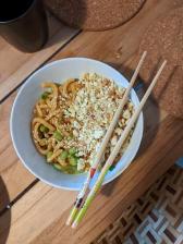 Hot Oil Udonnudeln mit knusprigen Tofubröseln